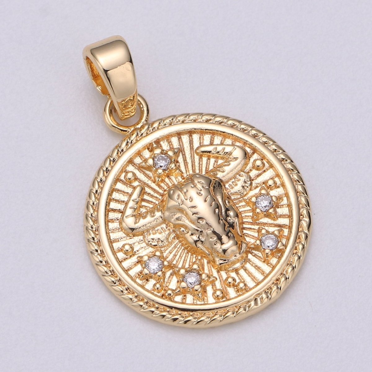 18K Gold Filled Zodiac Horoscope Sign Constellation Medallion Pendant Charm Textured Coin Decorative Edge for Necklace Jewelry Making | A-A1761-A-A1766