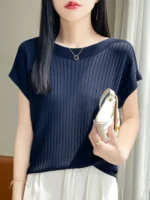 Be the first to review “2025 Fashion Slash Neck Women Sweater Ice Silk Spring Summer Knitted Sweater Loose Casual Korean Shirts Short Sleeve Knitwears” Cancel reply