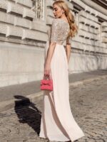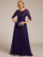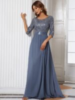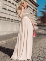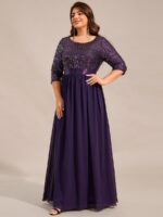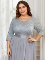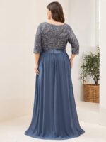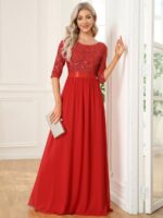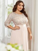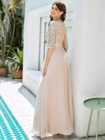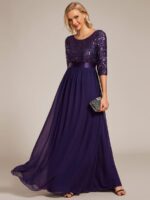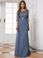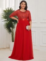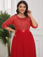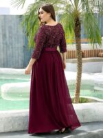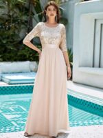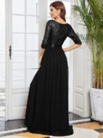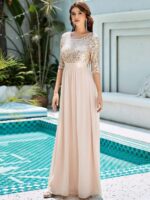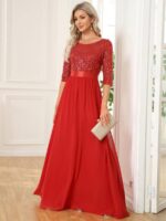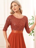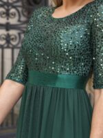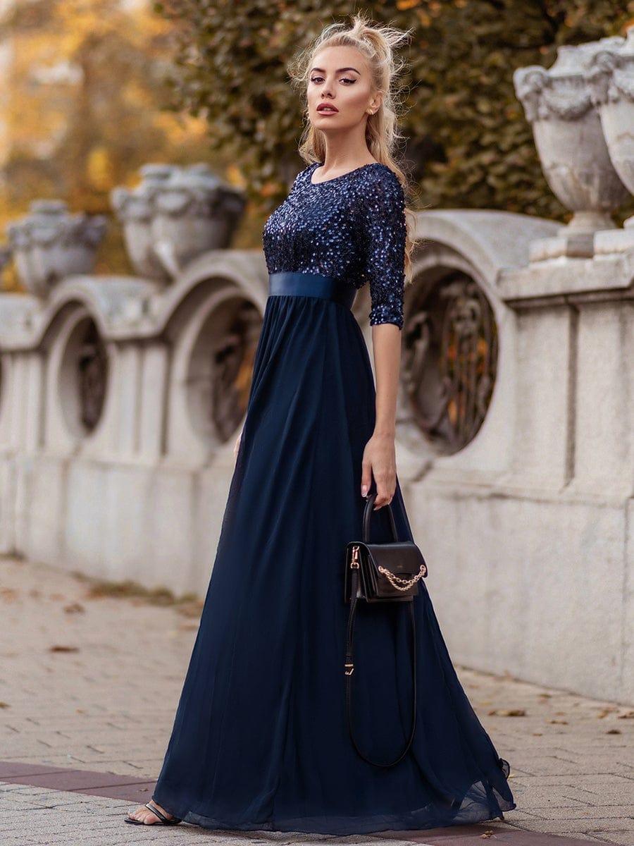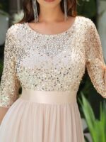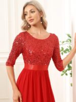 This sparkling sequin evening dress features a classic round neckline, half sleeves and a flowy A-line skirt which is friendly to most people. The ribbon in the waist helps to define your curve! We think this stunning long sleeve sequin evening dress is perfect for evening party, cocktail, prom, homecoming, graduation, weddings, and any other formal affair!