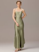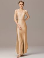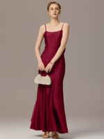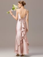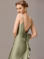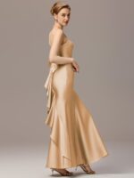 Sleek and sophisticated, this stretch satin mermaid bridesmaid dress hugs your curves for a stunning silhouette. The elegant bow detail adds a touch of charm, while the fitted bodice flows into a graceful flared hem. Designed for comfort and style, this maxi dress is perfect for weddings, galas, and formal occasions.