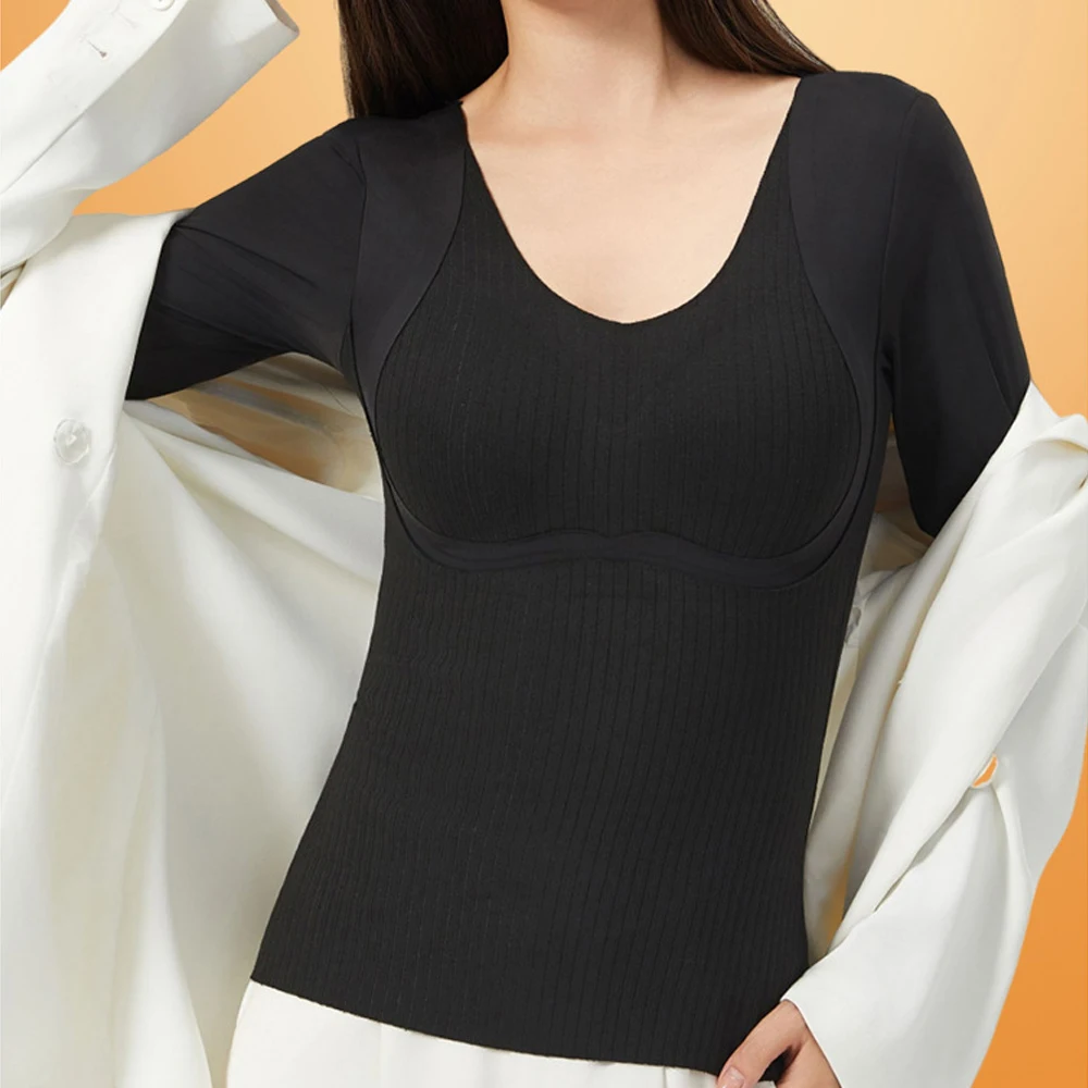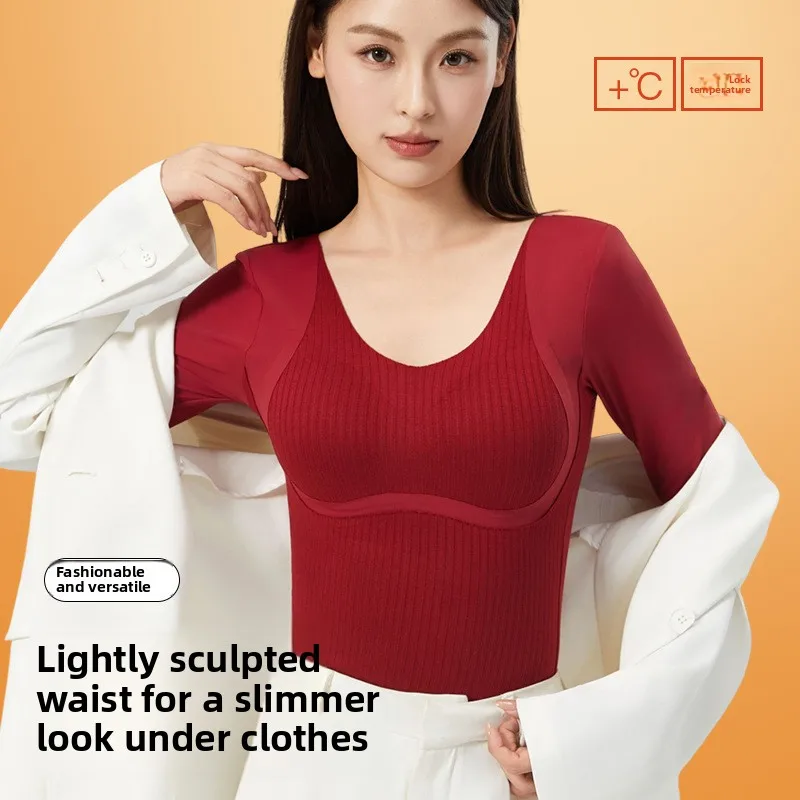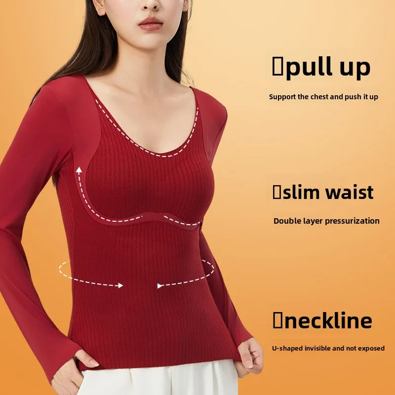 Women's autumn and winter thermal vest fleece lining warm thermal underwear top with bras