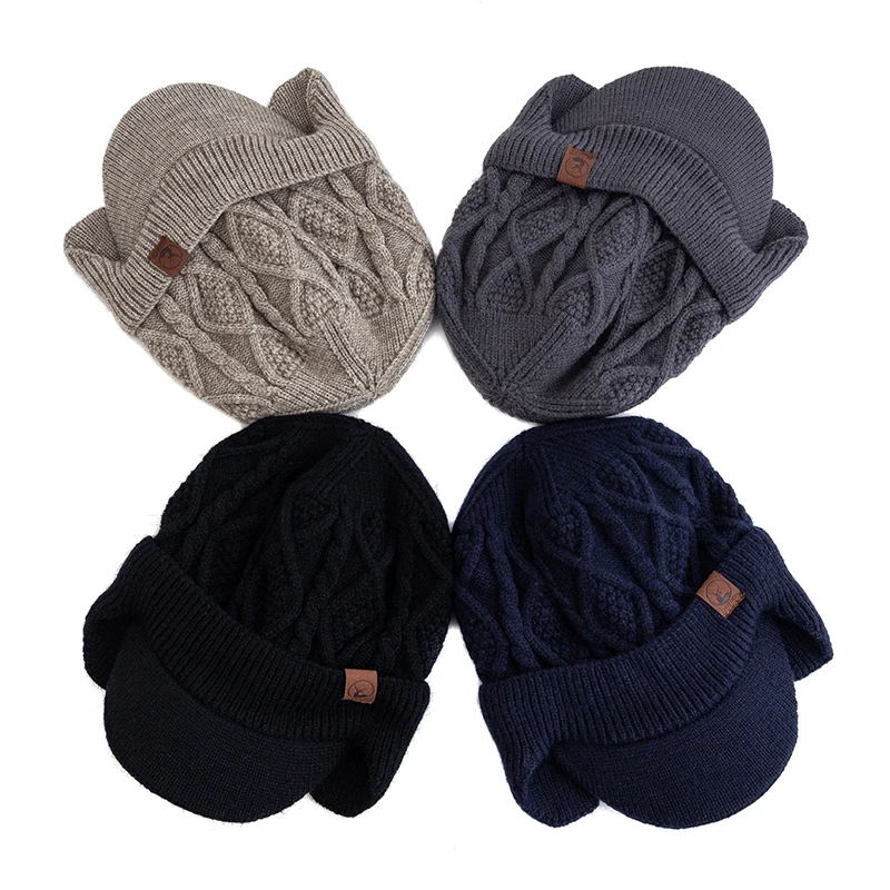 New Unisex Winter Hat Plush Fur Lined Warm Earflap Cap Stylish Soft Beanie Hat Outdoor Thick Ski Sports Knitted Hat