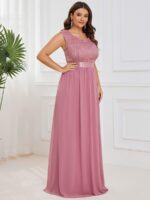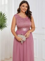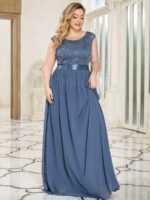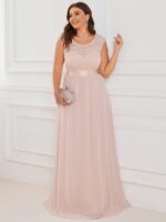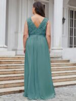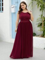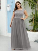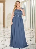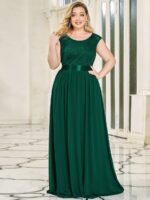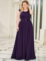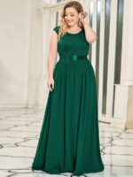 Be the first to review “Plus Size Classic Round Neck V Back A-Line Chiffon Bridesmaid Dresses with Lace”