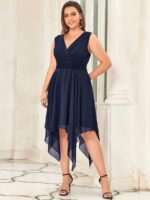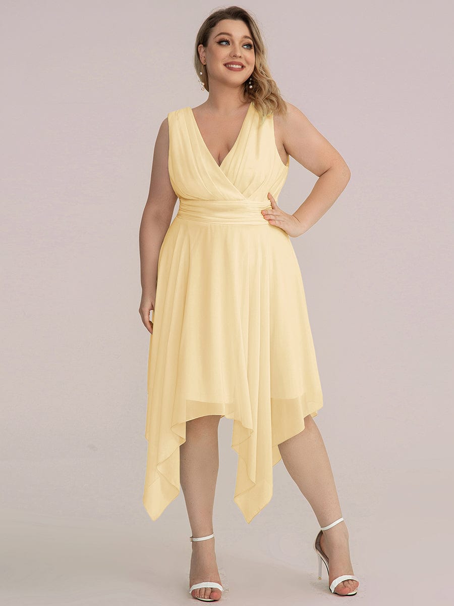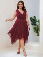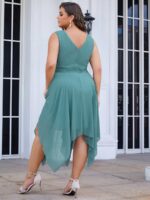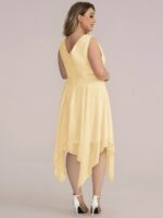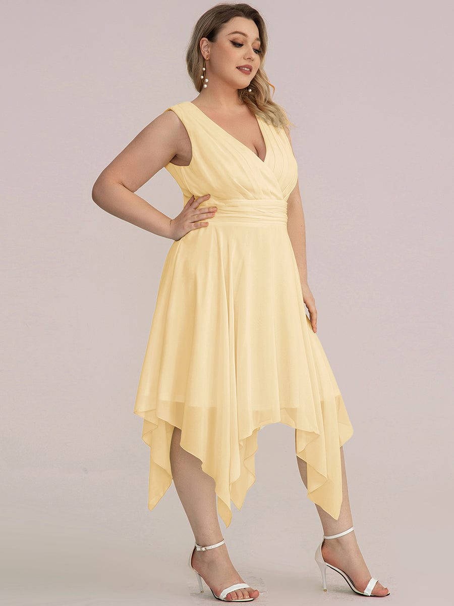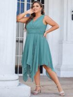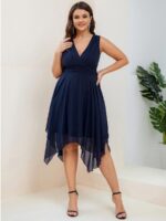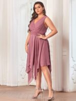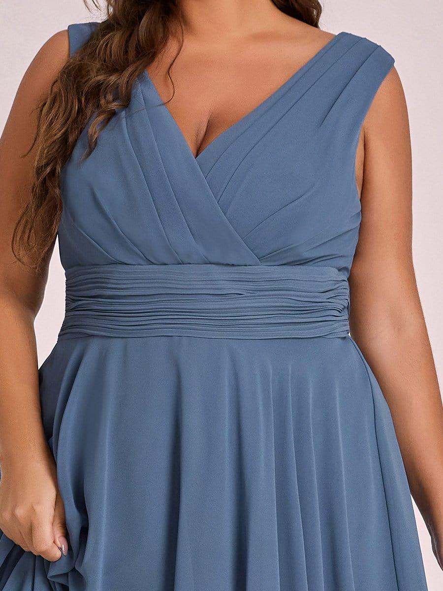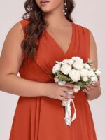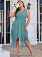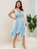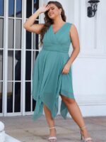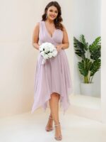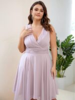 A super-stylish midi plus size bridesmaid dress is hard to resist especially when it has a ruched bodice and belt harmonized beautifully with each other. This double V-neck midi bridesmaid dress will shift your look beyond versatile. Go for this adorable short bridesmaid dress and make an ever-lasting impression on the guests at any event.