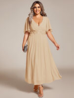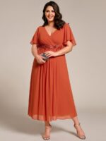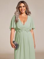 Radiate elegance in our Plus Size Elegant Short Sleeves V-Neck Floral Applique Wedding Guest Dress. The intricate floral applique on short sleeves and V-neckline adds a touch of romance, enhancing the overall grace of this dress. Tailored for comfort and style, this plus-size gown is perfect for curvy figures attending weddings. Embrace the joyous celebration with confidence and sophistication in this elegant wedding guest dress.