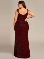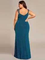 Make a dazzling entrance in this Plus Size Glitter V-Neck High Slit Sequin Shoulder Strap Evening Dress. The shimmering sequins create a show-stopping look, while the v-neckline and high slit add a touch of sophistication. Whether you’re attending a fancy cocktail party, a wedding reception, or a special celebration, this dress will make you the center of attention and leave a lasting impression.