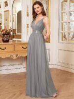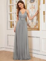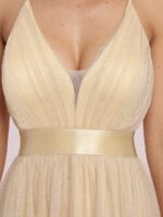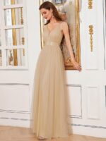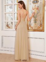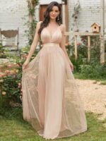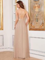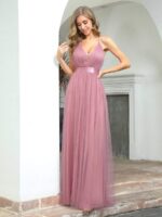 This sexy and sassy open back tulle evening dress would make every head turn and you will become talk of the town. It features spaghetti straps and deep V-neck. This sassy maxi tulle evening dress is backless and has cute criss-cross strappy design. It also features A-line silhouette and the dress’s length extends to the floor. This gorgeous open back tulle evening dress is perfect for all formal occasions, from evening party, cocktail, weddings to prom, homecoming and graduation!