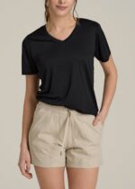 Embrace chic activewear with our Short Sleeve Active V-Neck T-Shirt for Tall Women. This t-shirt, like all of our tops for tall women, is designed to offer both style and functionality, featuring a relaxed fit and a flattering V-neck. The pre-washed, shrinkage-controlled fabric ensures a perfect fit and lasting comfort, making it an ideal choice for both active and casual wear. Whether you’re hitting the gym or enjoying a casual day out, this t-shirt is tailored to elevate your look while providing max comfort.