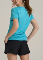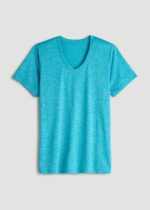 Short Sleeve Active V Neck T-Shirt for Tall Women in Scuba Blue Mix