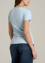 Short Sleeve Crew Neck Ribbed T-Shirt for Tall Women in Ice Blue