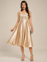 Get ready to turn heads at the next wedding with this stunning Sleeveless Deep V-Neck A-Line Midi Backless Dress! Crafted for the modern guest, this elegant piece features a flattering A-line silhouette that flows beautifully with every step. The daring deep V-neckline adds a touch of allure, while the backless design brings a hint of sultry sophistication. Made with lightweight, breathable fabric, this dress ensures comfort throughout the day and night.