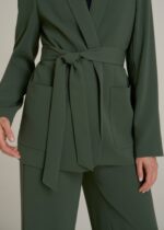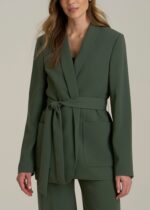 Reinvent your professional look with our Crepe Wrap Blazer, the best blazer for tall women seeking sophistication and comfort. Its tie waist and shawl collar blend seamlessly for a look that’s flattering and functional. Whether it’s a boardroom or a bar, this tall blazer for women ensures you look put-together and poised.
