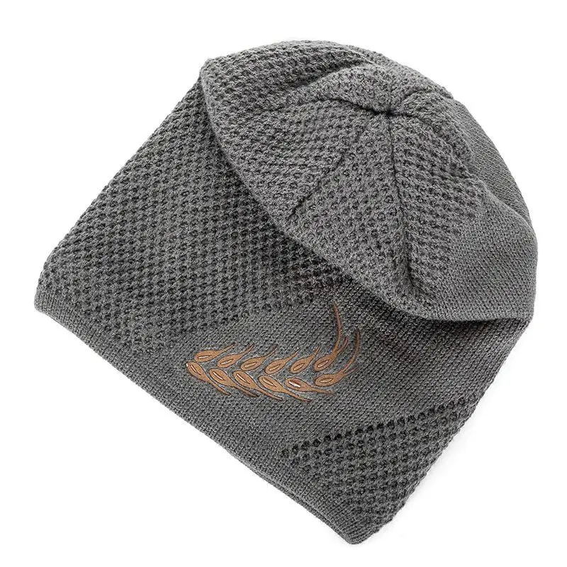 Unisex Warm Winter Beanie Hat Fashion Wheat Embroidered Knitted Hat Men Women Plush Fur Lined Thick Ski Beanie Cap