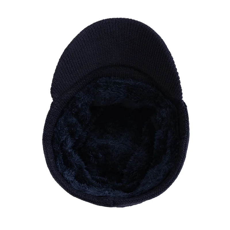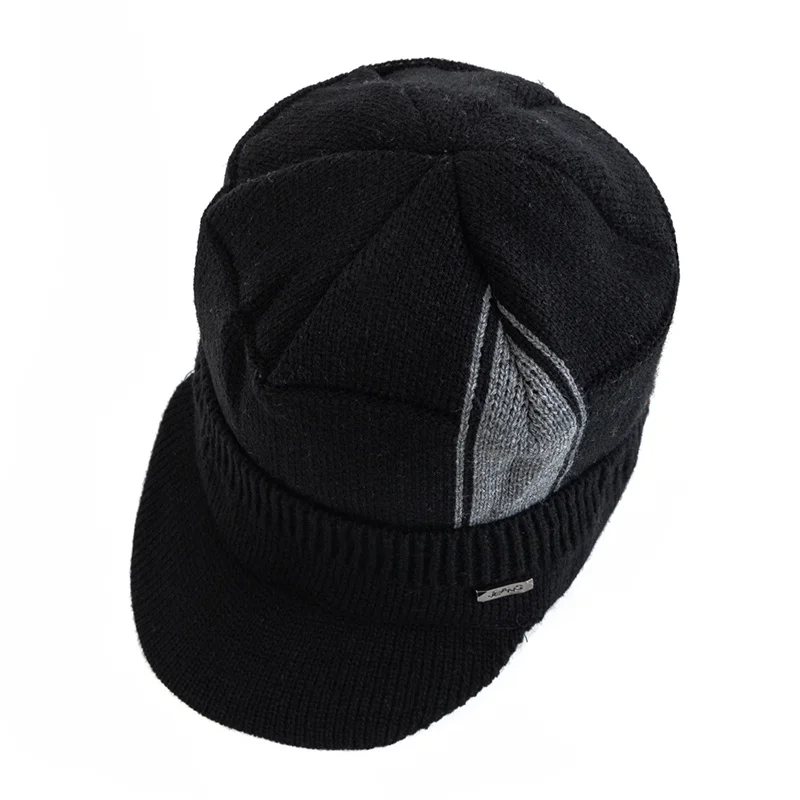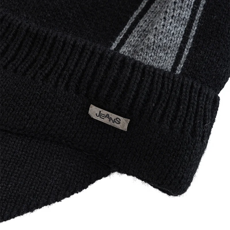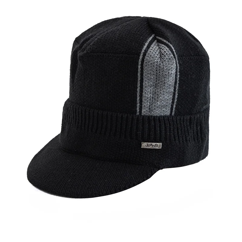 Unisex Warm Winter Hat With Brim Plush Fur Lined Beanie Hat JEANS Label Thicken Winter Hats For Men Women Outdoor Knitted Hat