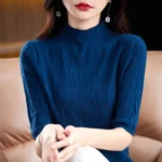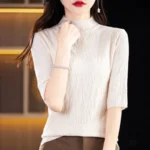 Be the first to review “Women Sweater Mock Neck Short Sleeve Knitted Shirts Slim Fit Pullovers Stripe High Strecth Autumn Winter Warm Bottoming Shirts” Cancel reply
