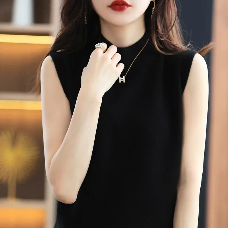 Women Sweater Vest Half High Collar Spring Autumn Slim Fit Knitwears Warm Pullovers Casual Knitted Tops Korean Fashion Jumpers
