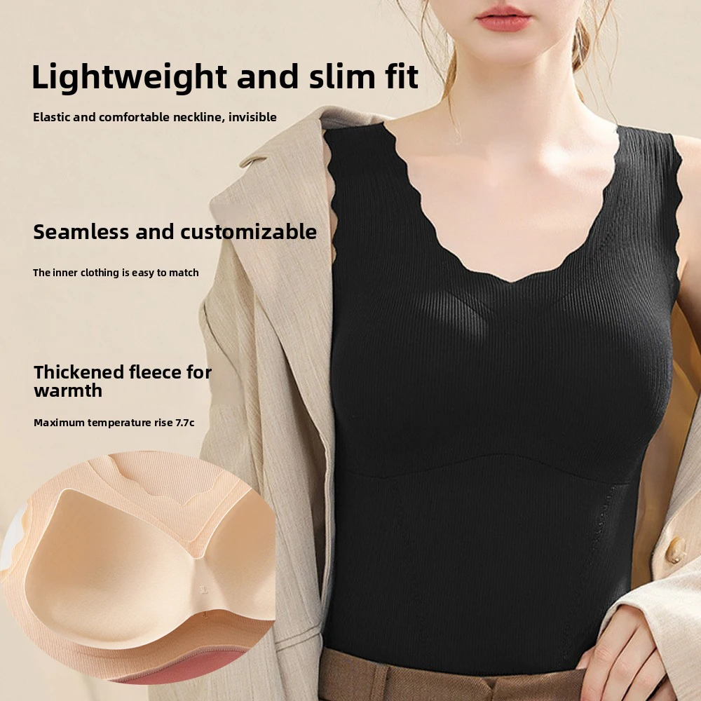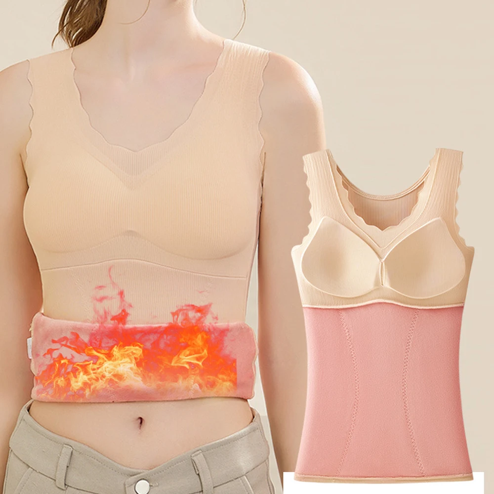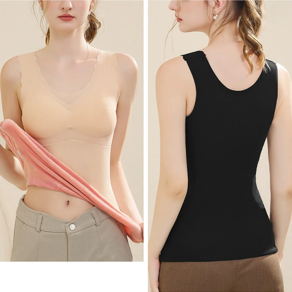 Women’s autumn and winter thermal vest fleece lining warm thermal underwear top with bras