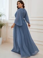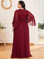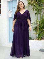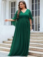 This sexy and edgy plus size formal evening dress would help you to show off your great choice and style. The plus maxi evening dress has an A-line silhouette and accentuates your whole body. It features deep V-neck and ruffles sleeves. The waist belt is also present which creates the illusion of slimmer waist. Grab this curvy evening dress and win hearts. A perfect choice for formal weddings and evening parties, cocktail, prom, homecoming, graduation, and any other formal affair!