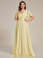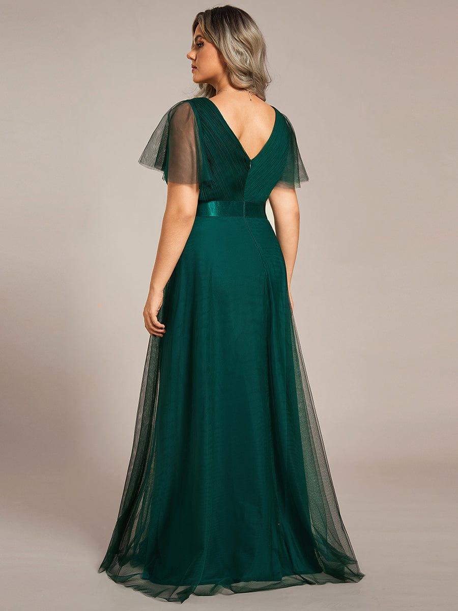 This romantic short sleeves bridesmaid dress features a deep V neckline, empire waist, flutter sleeves, and subtle tulle hemline. It is friendly to most body types. If you want to have an flowy tulle bridesmaid dress with short sleeve, then this maxi tulle bridesmaid dress with sleeves is perfect for you. We think this elegant short sleeve bridesmaid dress is perfect for all formal occasions, from evening party, cocktail, weddings to prom, homecoming and graduation!