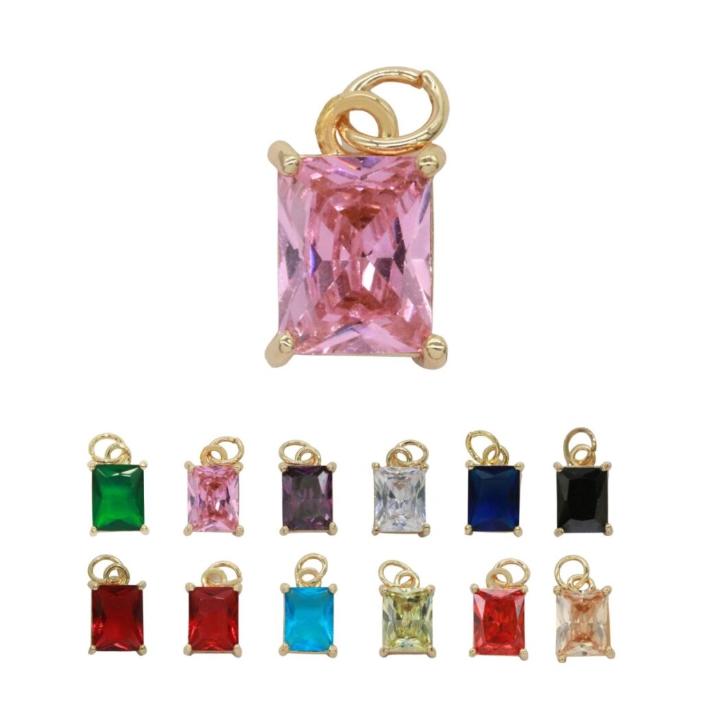 14k Gold Filled Micro Pave CZ Geometric Pendant Charm Emerald Cut Birthstone Add on charm E-881-E-891 C-369
