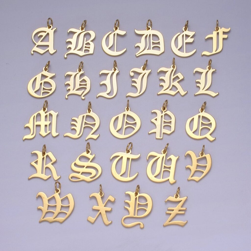 14k Gold Filled Old English Font Initial Letters Pendant Charm Wholesale Jewelry Supplies A677~A689